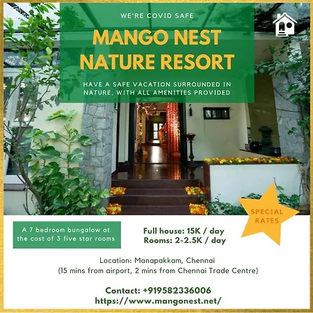 Mango Nest Nature Resort, South Chennai semtinde, Chennai Uluslararasi havaalanına arabayla 12 dakika uzaklıktadır. Chennai şehrinde keyifli konaklamanız için tesis, balkon, giyinme alanı, uydu kanallı düz ekran televizyon ile donatılmış 7 oda sunar.